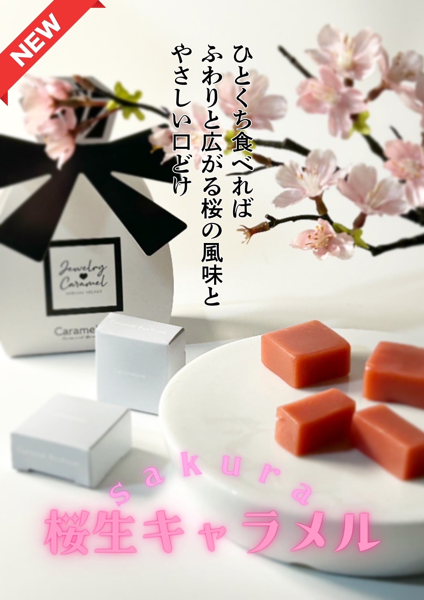ふんわりとした桜の香りと、クリーミーな生キャラメルが一体となり、心温まるひとときをお届けします。